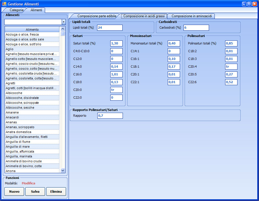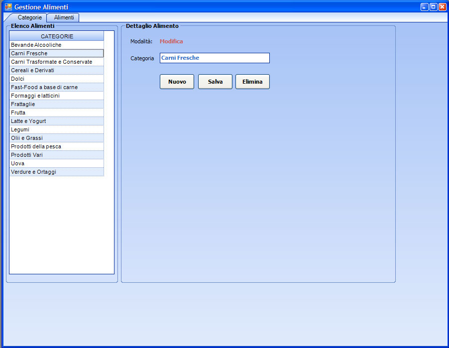 Gestione categorie alimenti