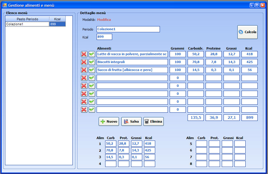 Creazione di un pasto standard